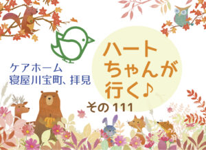 ケアホーム寝屋川宝町 ハートちゃんが行く♪ 2025.12.15 ケアホーム寝屋川宝町、拝見… リハビリプラザ桜ヶ丘 2025.12.09 リハビリプラザ桜ケ丘のボランティ… 有料老人ホームの取り組み 2025.12.04 有料老人ホームの取り組みNo.4…